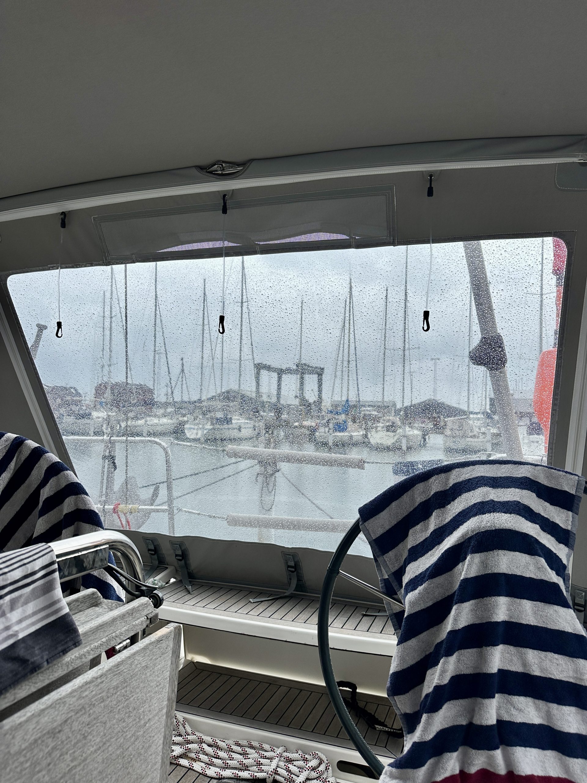 Mittlerweile sind wir 5 Tage in diesem Hafen. Das Wetter ist total wechselhaft. Mal gibt es viel Regen, mal ist Sonne, dann wieder viel Wind (meistens) und auch mal windstille Phasen. Und es ist eigentlich viel zu kalt für die Jahreszeit. Ich nutze die Zeit auch, um die Wäsche zu waschen. Hier ist grad nicht viel los und wer weiß, wann ich wieder dazu komme.