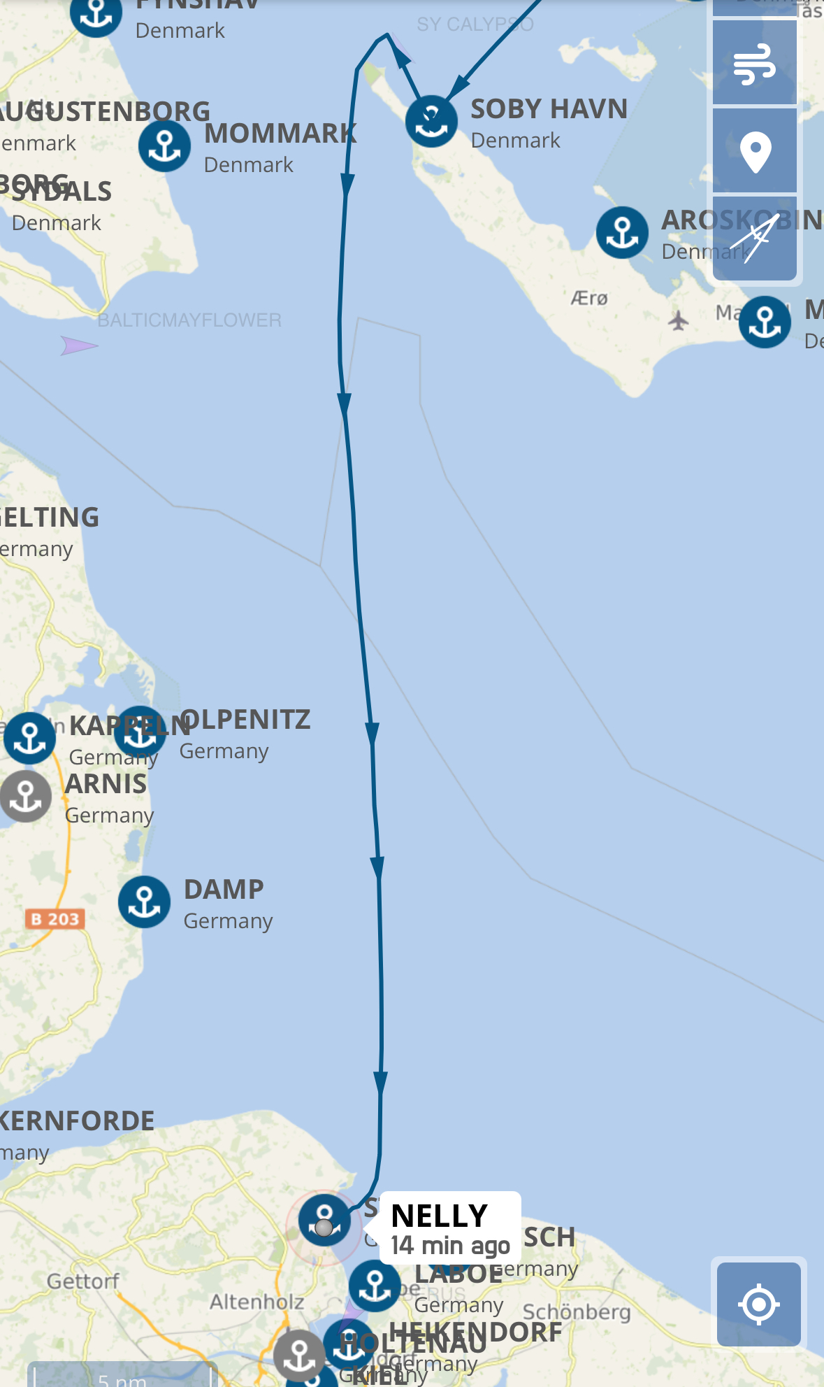 Heute ist der perfekte Wind, um nach Schilksee zu segeln. Wir hatten überlegt, noch einen Abstecher in die Schlei zu machen, aber danach hätten wir wieder das falsche Wetter. Also starten wir um 6.30 Uhr mit der aufgehenden Sonne. Wir setzen gleich die Segel und können sogar perfekt um die Nordspitze von Ærø segeln. Zum Törnende haben wir nochmal einen perfekten Segeltag. Je näher wir Kiel kommen, um so mehr wird der Wind und auch die Welle. Anfangs hatten wir W 3-4 bei ruhiger See, später dann W 5 mit viel Welle. Aber gegen 13 Uhr sind wir fest am Treidelsteg. Und es ist mächtig warm und dampfig und wir gehen erstmal baden. Gegen Abend spazieren wir nach Strande und gönnen uns Fischbrötchen. Auf die haben wir uns schon die ganze Zeit gefreut.