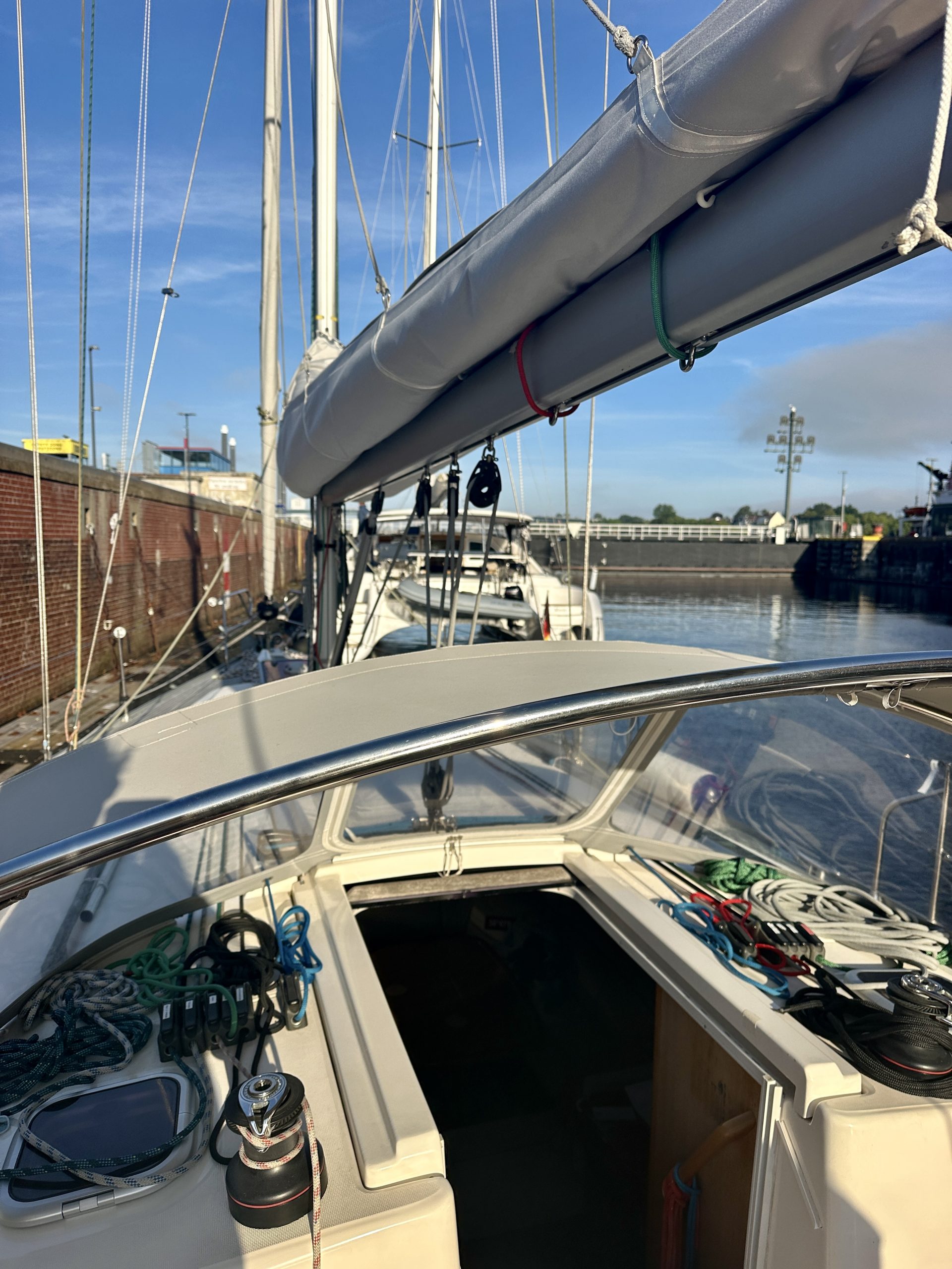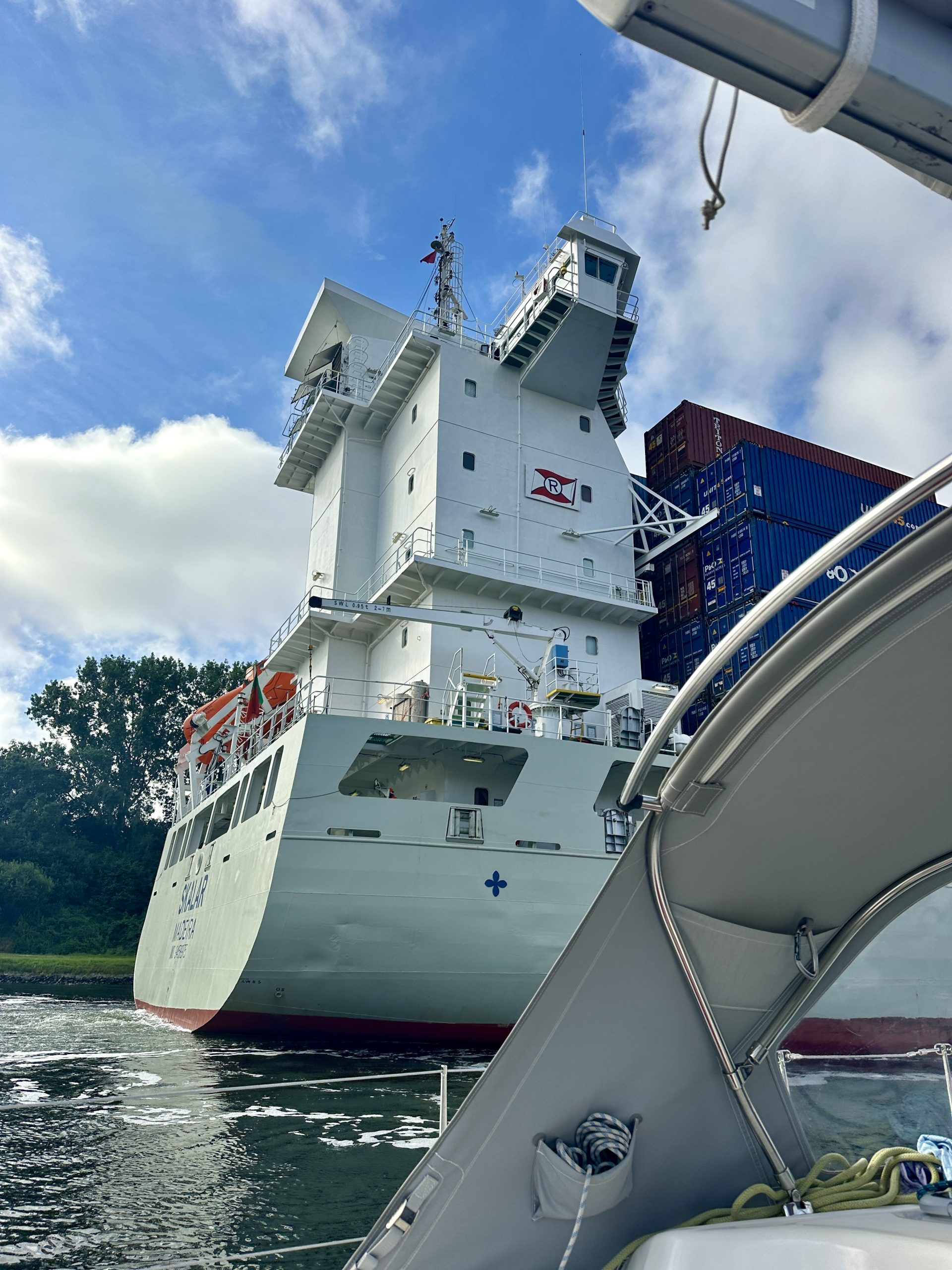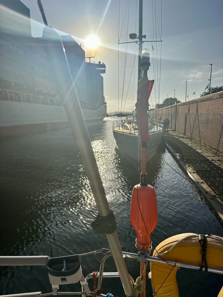 Heute geht es nach Hause. Wir legen um 7 Uhr ab. Der Wind kommt aus NW um 3 bft. Wir haben wieder mal Glück. Wir sind kurz vor 8 Uhr vor der Schleuse und können gleich rein. So sind wir um 8.25 Uhr schon auf dem NOK und Motoren bis Rendsburg. Die Sonne scheint, einige Pötte sind auch auf dem Kanal, aber um 11.40 Uhr sind wir fest im RVR Hafen.