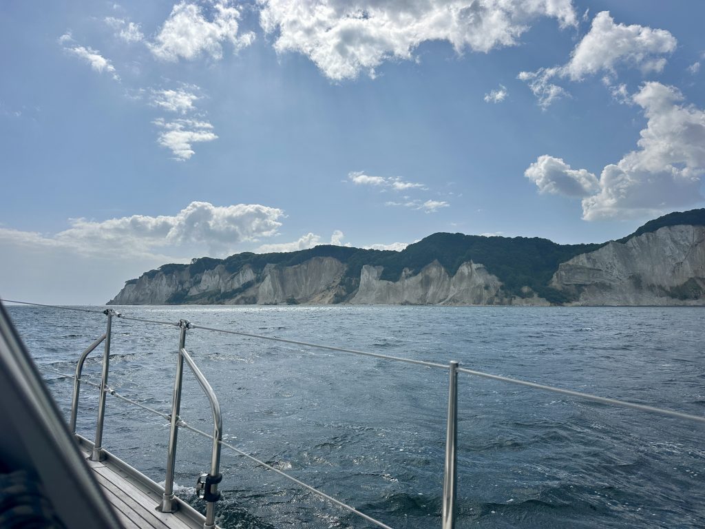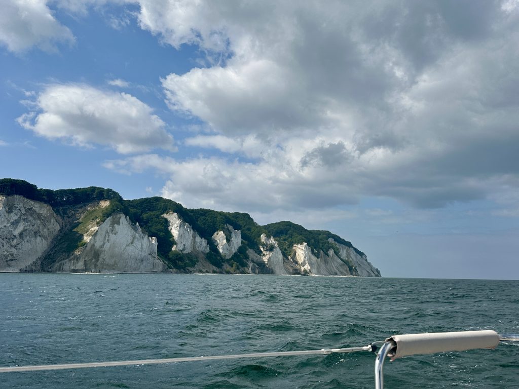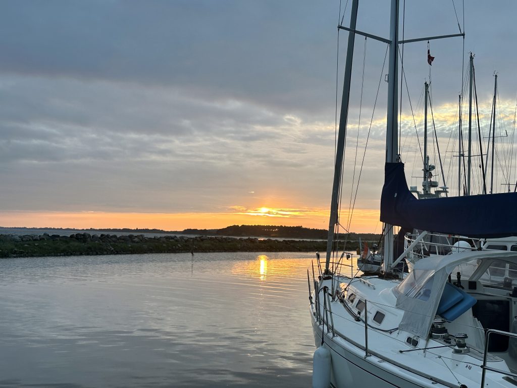 Wir legen um 6.30 Uhr ab. Irgendwie haben wir beide schlecht geschlafen, warum auch immer. Wir hatten allerdings einen ziemlich lauten Nachbarn, der bis morgens um 2 Uhr laute Musik gemacht hat. Wir setzen gleich nach der Hafeneinfahrt das Großsegel, fahren aber unter Maschine bis zum Windpark. Dort machen wir den Motor aus und setzen die Genua. Eigentlich wollen wir nach Rødvig, aber der Wind passt nicht so gut. Also entscheiden wir uns für Klintholm. Und auch das war nicht die besten Entscheidung. Mal ging Segeln gut, dann wieder nicht, dann wieder Maschine, dann wieder Segel, dann auch noch Welle. Und so waren wir dann um 16.45 Uhr fest in Klintholm im Päckchen. Der Hafen war schon gut voll und wurde noch voller. Von den 55sm konnten wir tatsächlich nur 30sm segeln, der Rest lief unter Maschine. Aber die nächsten Tage sind die Winde wieder gegen uns, und so war das der beste Kompromiss. Wir grillen noch am Abend und verbringen den Rest des Abends gemütlich an Deck. Auch der Wind hat nachgelassen.